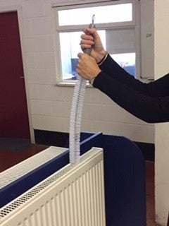 The present traditional method of cleaning radiators – ‘the radiator brush’ can be a very difficult and time-consuming task due to the lack of easy access!