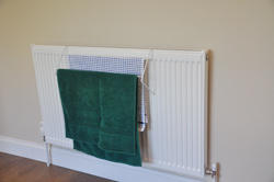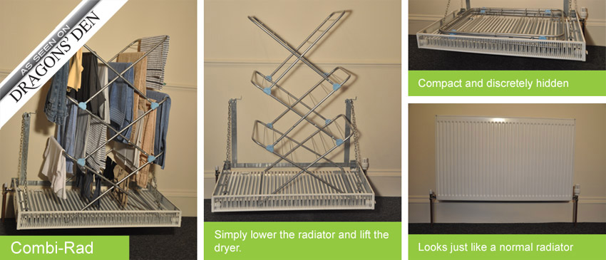 Rotarad’s dual purpose radiator allows you to dry laundry in the winter with no extra energy costs whilst maximising your heating system by using the unique Rotarad bracket and rotary value connector to suspend the radiator in position. This allows the built in airer to lift and stand on the radiator. The rising heat dries as it flows through and around the laundry without restricting heat output into the home. Rotarad’s back to basics process of using secondary heat is more eco-friendly saving energy and costs compared to alternative methods.